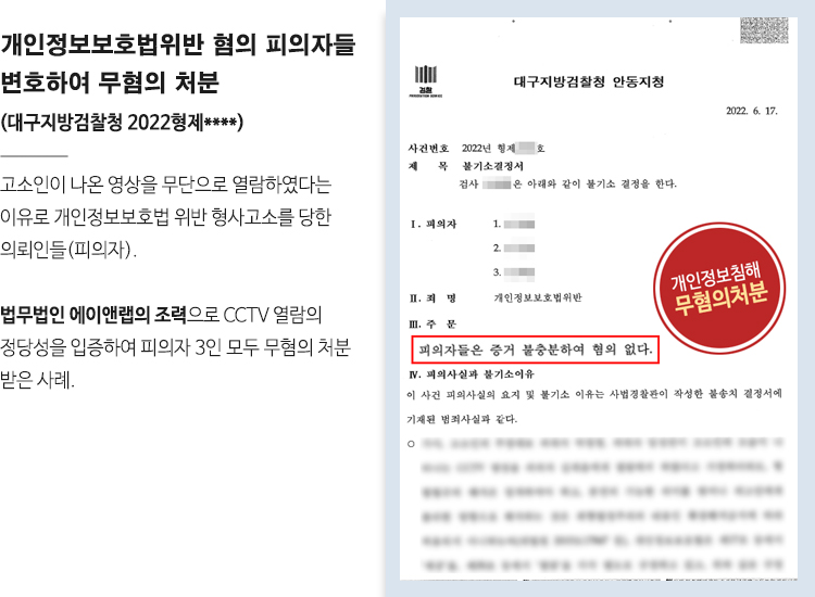개인정보보호법위반 혐의 피의자들 변호하여 무혐의 처분 이끌어내