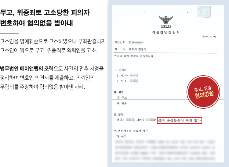 무고, 위증죄로 고소당한 피의자 변호하여 혐의없음 받아내