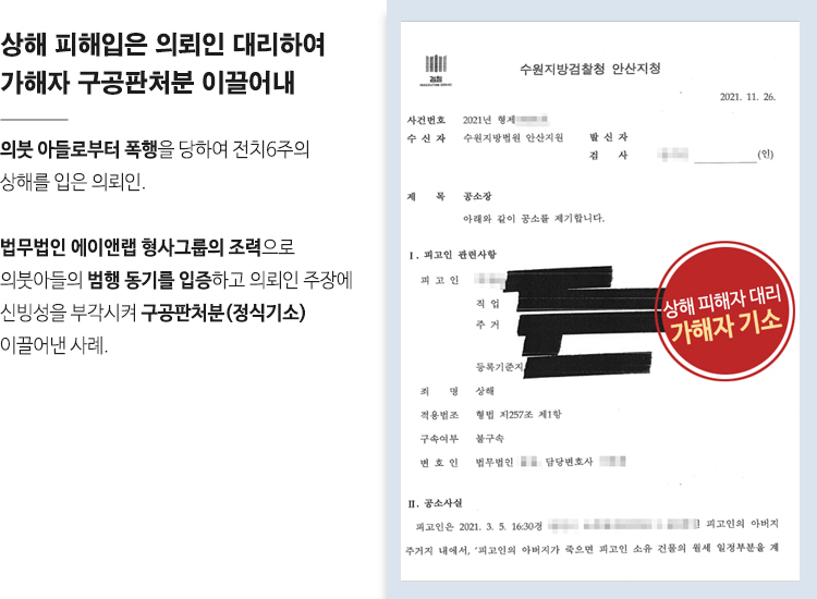 상해 피해자를 대리하여 구공판(정식 기소) 처분 이끌어 내