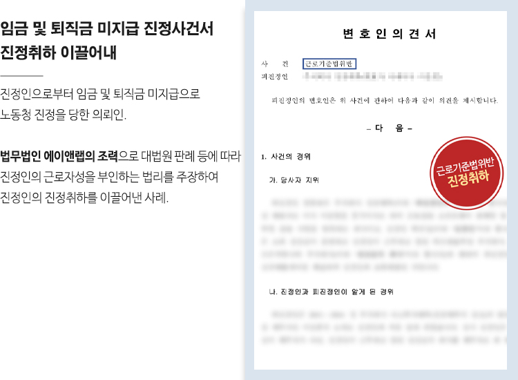 임금 및 퇴직금 미지급 진정 사건에서 근로자성이 부인되어 진정취하 이끌어내