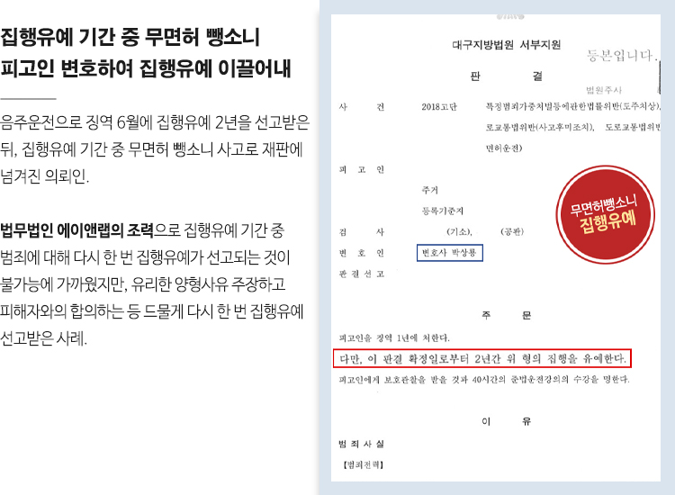 집행유예 기간 중 무면허 뺑소니 피고인 변호하여 집행유예 이끌어내